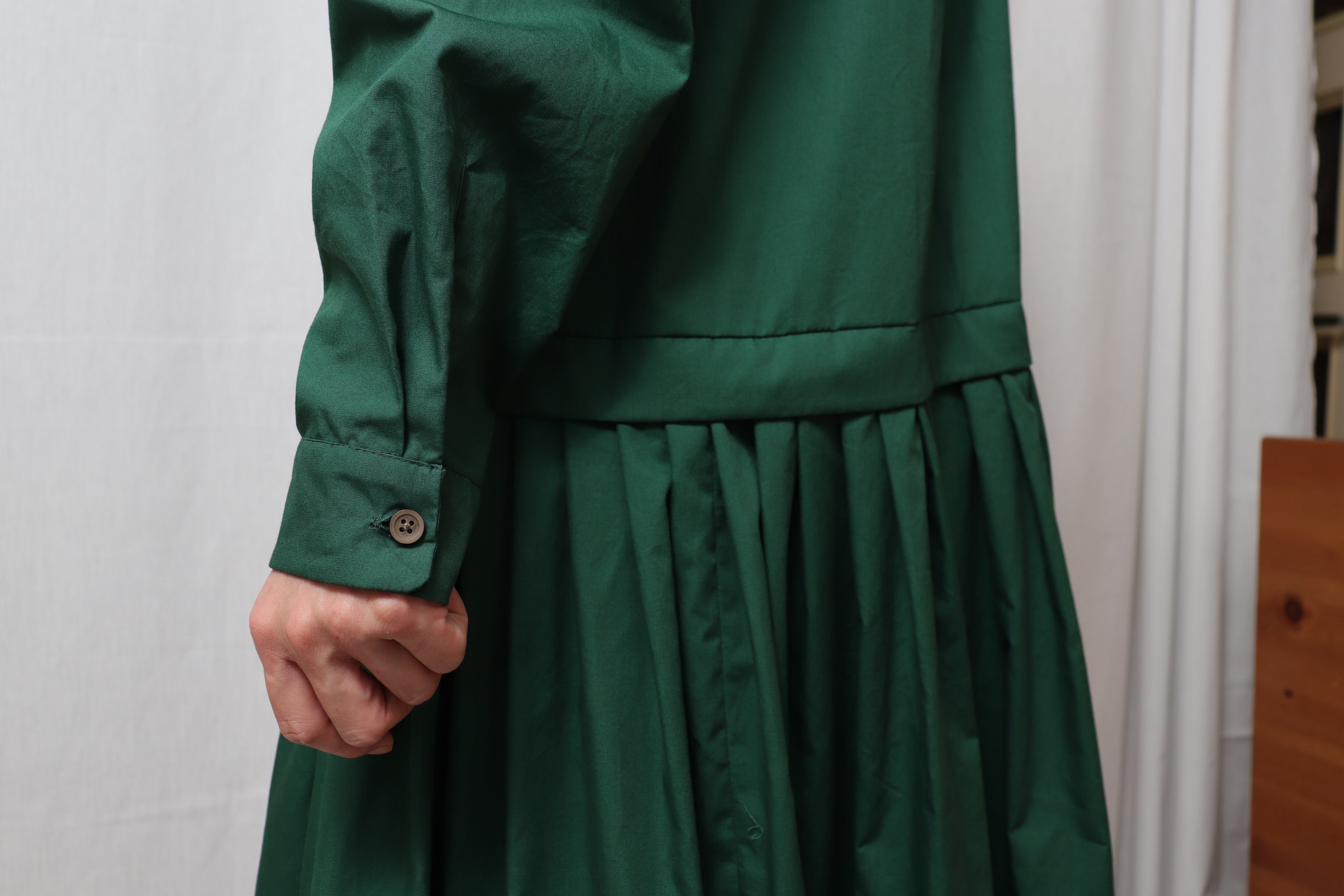 メンズライクなシャツとタックスカートを組み合わせたワンピースです